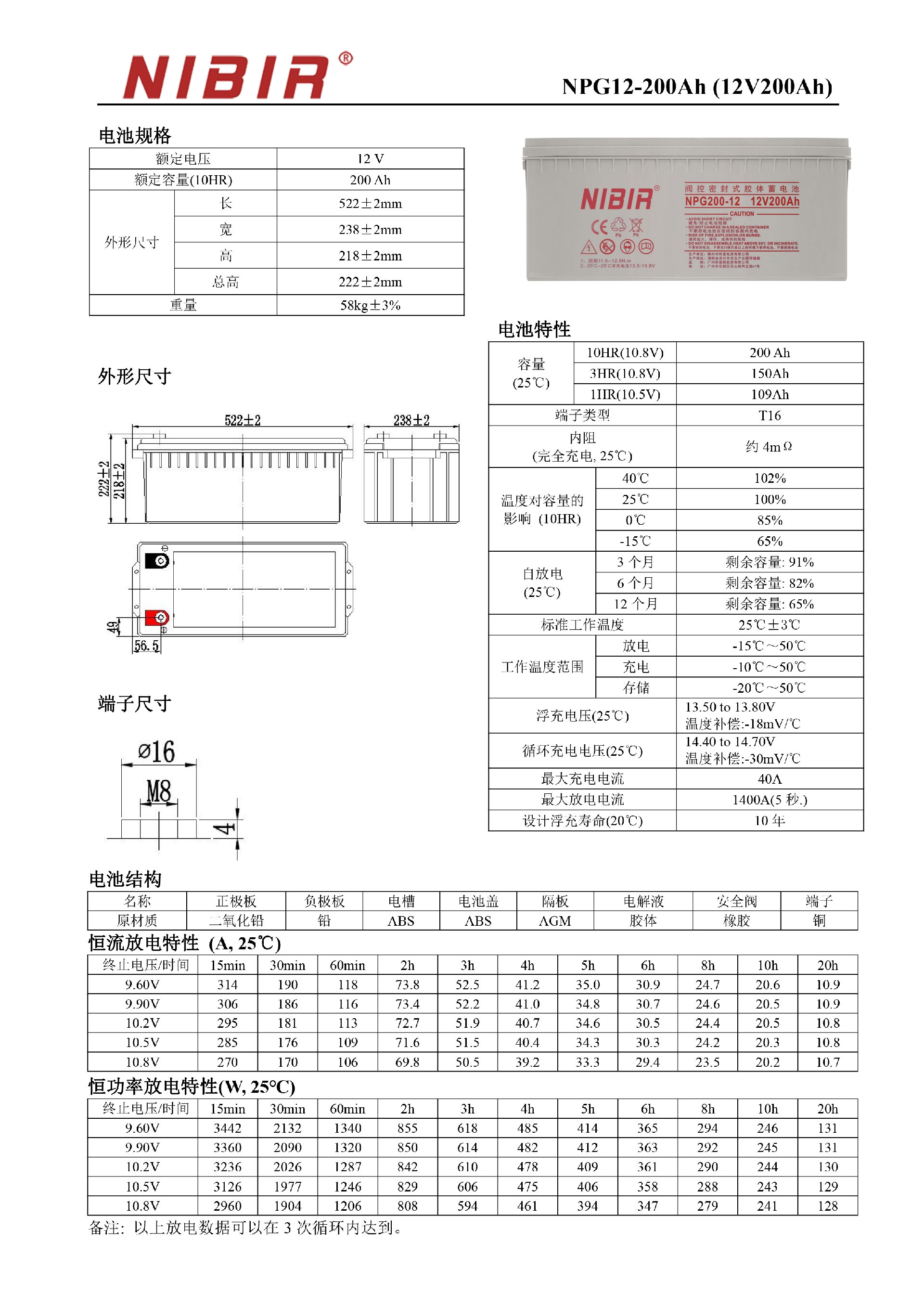 1:长使用寿命,浮充寿命达(20℃)10年以上,节省费用支出。